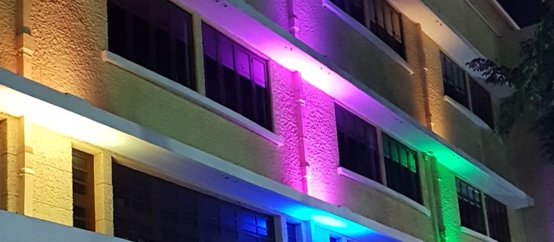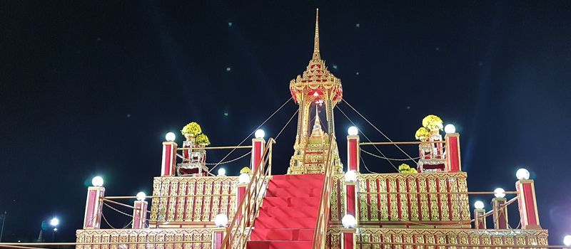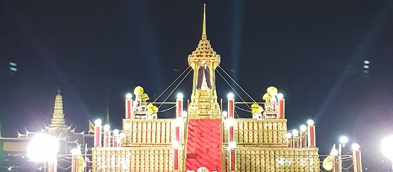 อาคารที่เล่นไฟสีต่างๆ น่าจะเป็นหอศิลป์ราชดําเนิน