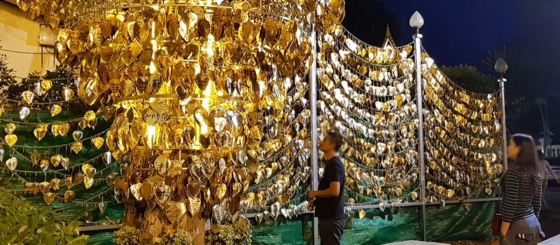 เดินออกมาเพื่อขึ้นไปองค์เจดีย์ภูเขาทอง...ก็ผ่านที่เขาแขวนแบบใบโพธิ์เงินโพธิ์ทอง...พอแขวนเยอะๆ ก็สวยดี....แต่เราก็ไม่มีเงินทำบุญตอนนี้