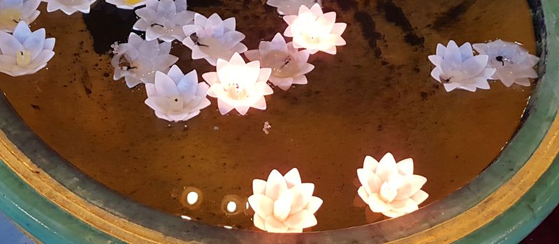 ที่อ่างด้านหน้ามีที่ลอยเทียน..และมีเทียนที่ถูกจุดลอยอยู่จากคนที่มาบูชาเมื่อกี้