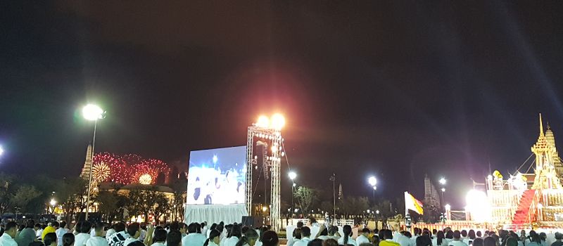ตอนที่เดินเอาดอกไม้-ธูป-เทียนกลับมาไหว้พระบรมสารีริกธาตุ...เราก็สงสัยเรื่องผ้าปูนั่ง....เพราะถ้าต่างคนต่างเอามาต้องแตกต่าง...แต่เราสังเกตว่าหลายคนคือมีผ้าปูนั่งเหมือนกัน...ซึ่งน่าจะมีแจกหรือเปล่า เราก็คิดย้อนแบบตอนเราเข้ามาตรงนี้แรกๆ...ก็ได้ยินประกาศว่าให้ไปเอาหนังสือสวดมนต์...ตอนเราคิดๆ ก็เหมือนมีประกาศให้ไปเอาผ้าปูนั่งและหนังสือสวดมนต์ที่เต็นท์...เราก็เลยเดินไป....ตอนแรกไม่เห็นว่าอยู่ตรงไหน...แต่เห็นคนที่เดินก่อนหน้าเราเดินไปด้านหลัง...เราก็เดินตาม...ก็เจอที่แจกอยู่ทางด้านหลังเต็นท์