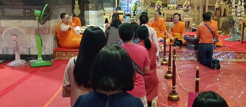 เดินไปไหว้หลวงพ่อมหาเศรษฐีนวโกฏิเพื่อขอพรและเสี่ยงเซียมซี...ก็เห็นคนต่อแถวให้ผู้ชายมีอายุคนหนึ่งเจิมหน้าผากให้