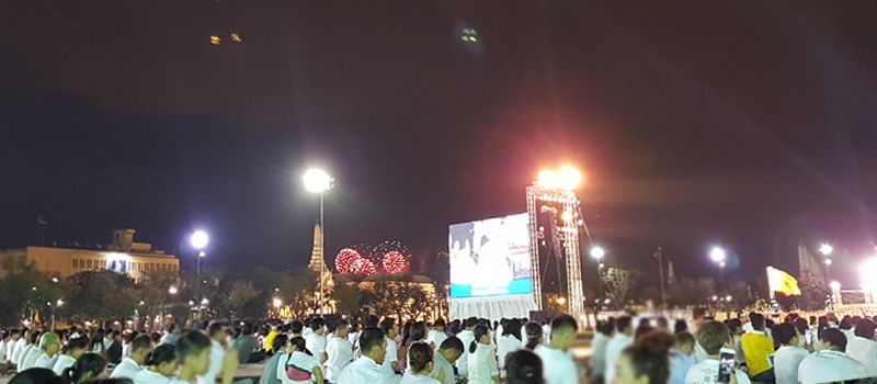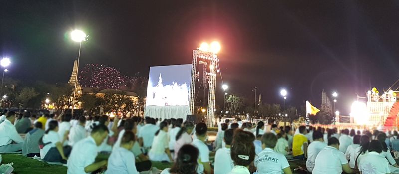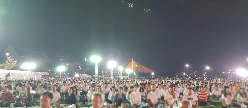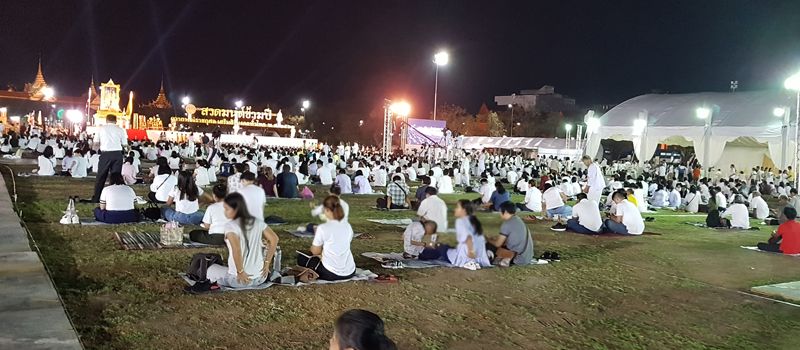 พิธีกรก็แจ้งว่าคนมาเยอะมาก...น่าจะมากกว่า 2 หมื่นคนเพราะหนังสือสวดมนต์ 2 หมื่นเล่มแจกหมดแล้ว....ส่วนใครไม่ได้ให้ขอคนข้างๆ สแกน QR CODE ที่หลังหนังสือสวดมนต์