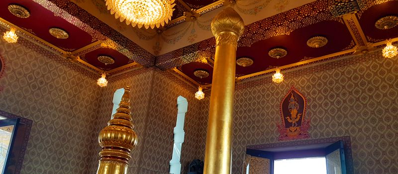 มองออกไปนอกหน้าต่างจะเห็นสีทองของวัดไกลๆ
