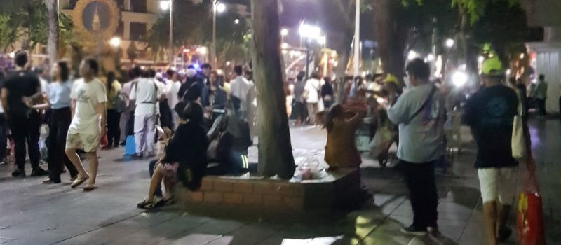 ระหว่างรอข้ามถนนก็เห็นตึกไกลๆ...มีคำว่าศาลาเฉลิมด้านบน...แต่ไม่รู้คำต่อคืออะไร