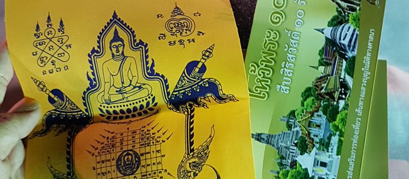 ข้างในหนังสือสวดมนต์ก็มียันต์และแผ่นพับไหว้พระ 10 วัดอยู่ด้านใน