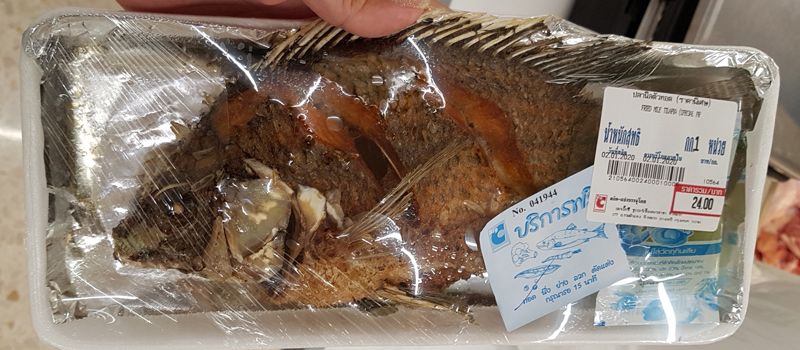 ลงแถว Big-C ก็มาซื้อปลาตัวละ 24 บาท...ข้าวไม่มีขาย...น่าจะหมด....เราก็เลยไปซื้อซอยข้างๆ ได้มา 5 บาทแบบธรรมดา...ถ้าบนห้างคือ 6 บาท