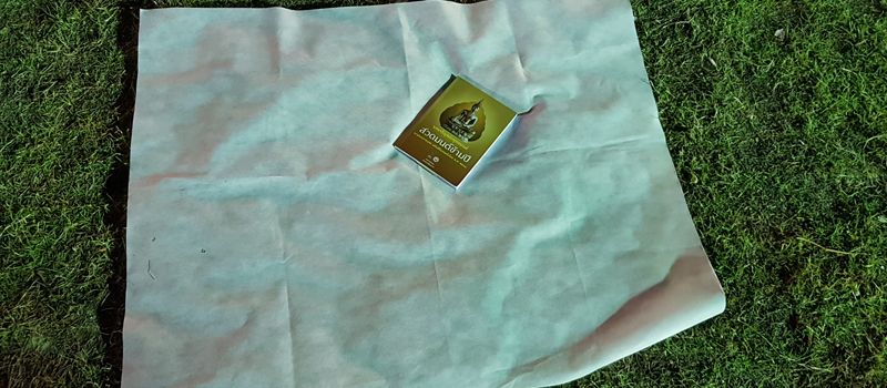ได้ผ้าปูนั่งและหนังสือสวดมนต์มา
