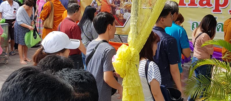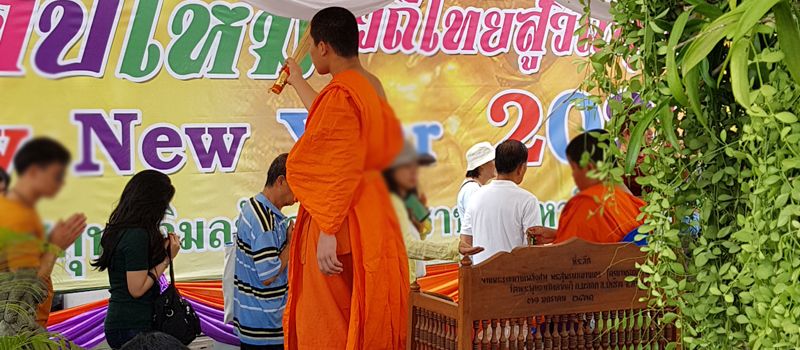 ออกจากโบสถ์พระปางนาคปรกก็จะเดินออกจากวัด...ก็เจอแถวแบบรดน้ำมนต์...ก็เดินไปต่อแถว...แต่ก็ไม่รู้แถวไหน...เพราะเหมือนมีคนต่างชาติเดินๆ...แต่เราก็ไปต่อแถวหลังเขา...ตอนนั้นมีคู่รักวัยทีนเดินมาหลังเรา...แล้วเหมือนจะแซงไปด้านหน้า...แบบแทรกๆ...เราเลยพูดลอยๆ..."ต่อแถวไหนวะเนี่ย"....คือจะพูดถึงไอ้คู่รักวัยทีนนี่แหละ...โดยเฉพาะผู้หญิงที่เป็นตัวตั้งตัวตีจะแซง...ก็ได้ยินผู้หญิงพูดกับคนที่มาด้วยแบบ...ต่อแถวไหน...แต่สำหรับเราคือพอพูดออกไป...ในใจคือไม่ดีเพราะในวัดและเรามาทำบุญปีใหม่...มาพูดคำหยาบตั้งแต่วันแรกของปีในวัดเลย..แต่โมโห..สรุปไอ้เด็ก 2 คนนี้ก็แซงจริงเพราะกลุ่มผู้ชายต่างชาติที่เราต่อ...เขาก็ต่อแถวรดน่้ำมนต์เหมือนกัน