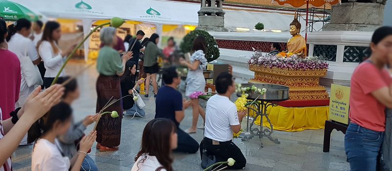 ตอนแรกจุดเทียนไหว้ก่อน...แล้วก็มาลังเลเพราะไม่รู้ว่าต้องเอาเทียนไปวนรอบพระบรมสารีริกธาตุด้วยมั้ย...เห็นหลายคนมีดอกไม้-ธูป-เทียนตอนเดินวน...ตอนแรกจะจุดธูปไหว้ก่อนก็เลยเอาดอกบัวกับธูปไปเดินวนขอพรรอบพระบรมสารีริกธาตุก่อน 3 รอบ....แล้วมาขอพร...ก็เรื่องงานและเรื่องอื่นๆ ที่ทุกข์ใจตอนแรกที่มีคนนั่งหน้าๆ แถวแรกติดทางขึ้นพระบรมสารีริกธาตุที่มีที่กั้นไว้...เราก็ไปนั่งไหว้เยื้องๆ...แล้วมีคนมาถ่ายภาพแบบนั่งตรงนั้นต่อ..เราก็รอ...พอคนออก...เราก็เขยิบไปนั่งตรงกลางข้างหน้าพระบรมสารีริกธาตุเพื่อขอพร...ก็เหมือนได้ยินแว่วๆ แบบเราขอพรนาน...แต่พอดีเรามีเรื่องทุกข์ใจปัญหาของเราเลยไม่สน...ก็รู้แหละถ้ามีคนพูดแบบนี้คือรอถ่ายภาพ...ซึ่งก็จริง...พอเราลุกออก...ก็มีคนมานั่งที่เราเคยนั่งเพื่อถ่ายภาพ