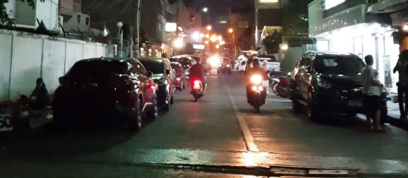 เดินเข้าซอยข้างศาลหลักเมือง...ย้อนกลับไปทางเดิมกลับโฮสเทล...รถก็เยอะเหมือนตอนขามา