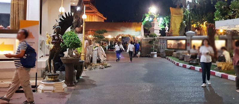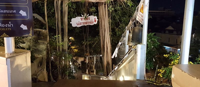 เดินมาถึงวัดตอน 18.18 น. คนก็ไม่ได้เยอะมากแบบที่คิด อาจเพราะยังค่ำๆ อยู่...ซึ่งก็ดีที่เราจะขึ้นไปไหว้ขอพรด้านบน