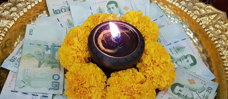 มีดอกไม้-ธูป-เทียนให้หยอดตู้บูชา...แต่ไม่มีเงินเลยแค่ไหว้ขอพรเฉยๆ...ที่องค์พระนอนที่เขาไว้ให้จุดธูปเทียนบูชา