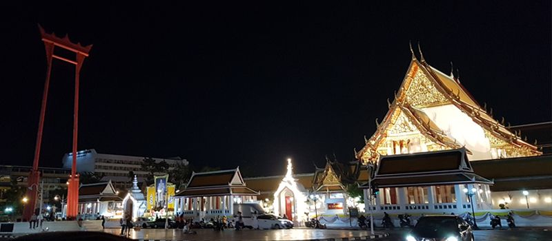 เดินมาวัดสุทัศน์อีกรอบ...เข้าไปเพื่อเปลี่ยนเป็นกางเกงขาสั้น...โบสถ์ก็ยังไม่ปิด...ก็ได้ยินพระประกาศตอนที่เรามาเมื่อกี้ว่าปิดตอน 3 ทุ่ม
