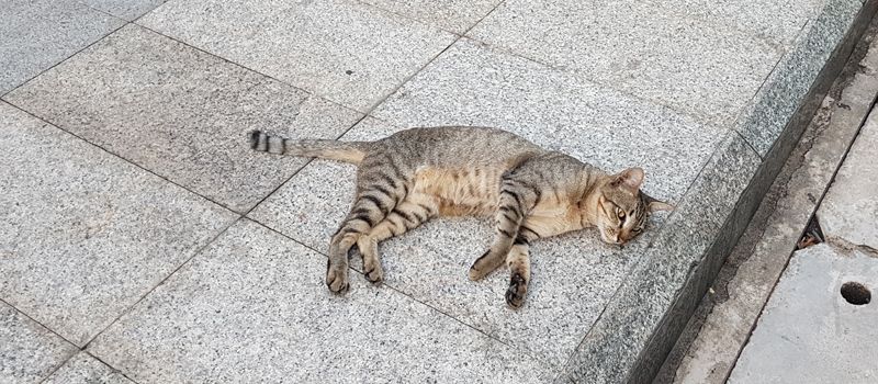 เดินออกมาเรื่อยๆ ก็จะไปข้ามถนนฝั่งตรงข้ามรอรถเมล์กลับบ้าน...เจอแมวระหว่างทางอีกตัว