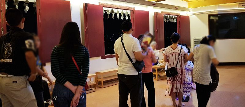 เดินเข้าไปก็เจอคนมารอสวดมนต์เยอะเหมือนกัน...ความจริงงานเริ่มตอน 1 ทุ่มซึ่งจะมีการแสดงก่อน