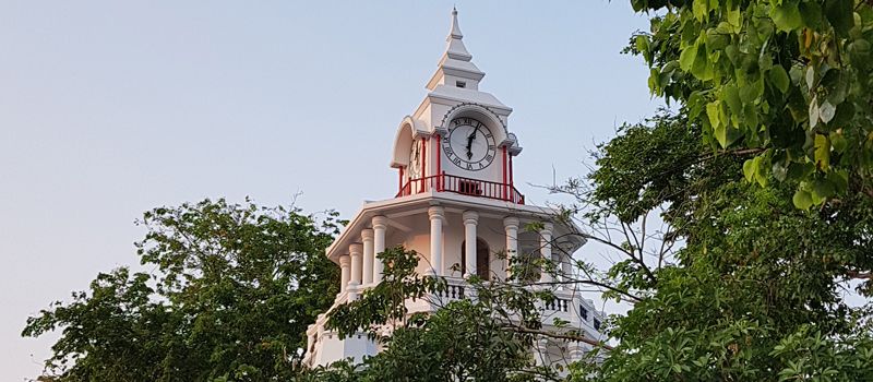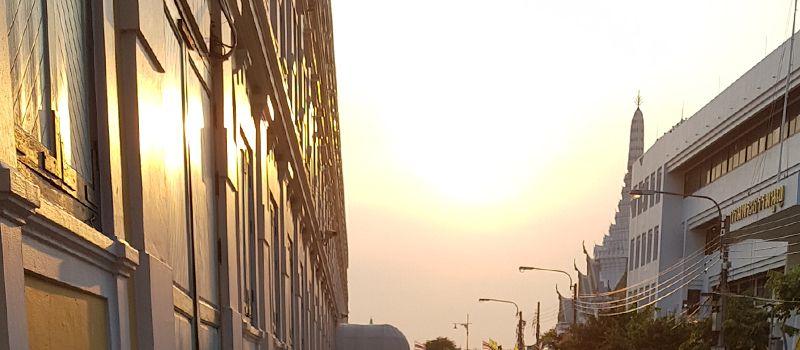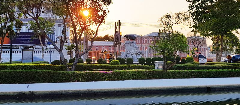 เดินไปทางเลียบวัดพระแก้วจนถึง 4 แยกที่เมื่อกี้เราเลี้ยวเลียบสวนสราญรมย์ แต่รอบนี้เราเดินตรงไปเรื่อยๆ ผ่านวัดโพธิ์ เจออาคารสูงๆ สีขาวเหมือนหอนาฬิกา แต่ไม่เจอป้ายบอกว่าคืออาคารอะไร