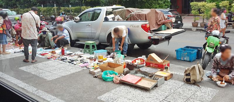 ตอนลงมาจะออกไป 7/11 หาของกินคือมาม่าแหละ ไม่มีเงิน ป้า ป. ก็บอกพี่ น .ขายของอยู่ ป้ารอพี่ น. ก่อนค่อยไป พอเราเดินออกไปด้านนอกก็มองหาพี่ น. อยู่ไหน เลยไม่ได้ดูพื้น เลยสะดุดล้มพื้นต่างระดับ มือถือกระเด็น...คนขายแถวนั้นถาม...เป็นไรมั้ย...เรารีบลุกขึ้นบอก..ไม่เป็นไรค่ะ....เพราะคนเยอะ ได้ยินเสียงแว่วตามหลังแบบอะไรของเขา...และมีอีกเสียง..แบบล้มบ่อย บลา บลา...ตรงนั้นอาจมีคนล้มบ่อยก็ได้..แต่เรารีบลุกเพราะคนเยอะและกลัวโดนหาว่าแกล้งล้ม ตอนนู้นเราออกมาเจอพี่ น. ขายของด้านข้าง เราเลยยิ้ม โบกมือให้ พี่เขาก็ยิ้มกลับ แต่เราได้ยินเสียงคนแถวนั้นพูดว่า...ยิ้มให้ใคร..แต่เราไม่ได้หันไปมอง...เดินกลับจาก 7/11 ก็รีบเดินกลับโฮสเทลไม่สนใจไร เดินไปส่องหน้าต่างด้านข้าง คนก็ขายของอยู่เต็ม สายกว่านี้ แดดไล่ก็ต้องเลิกขายของแล้ว