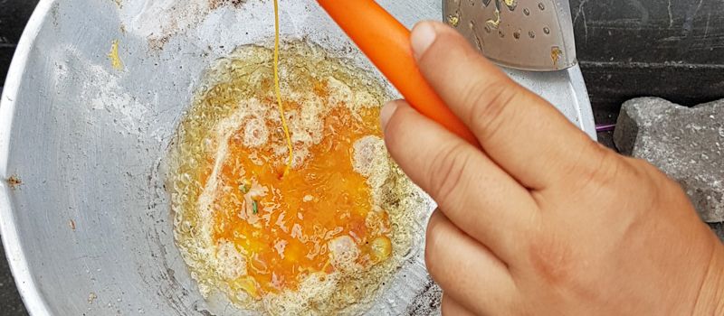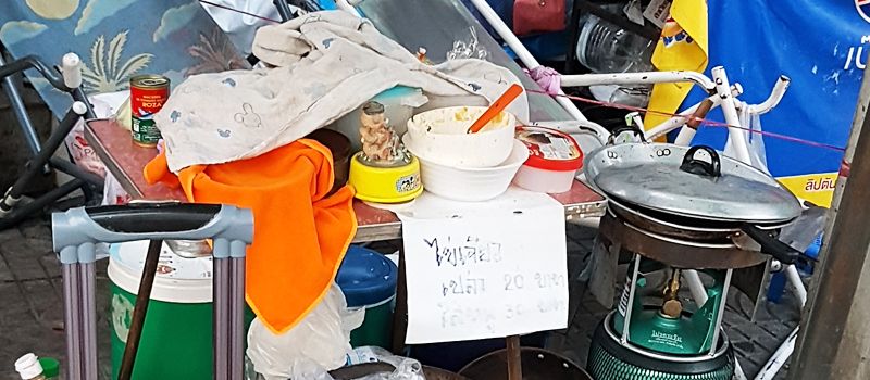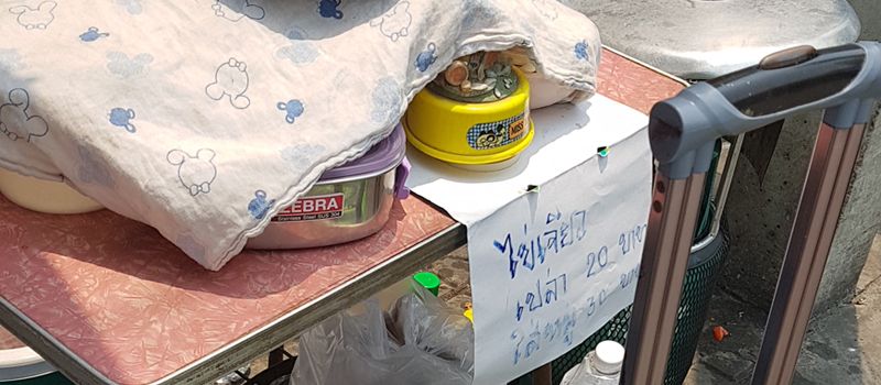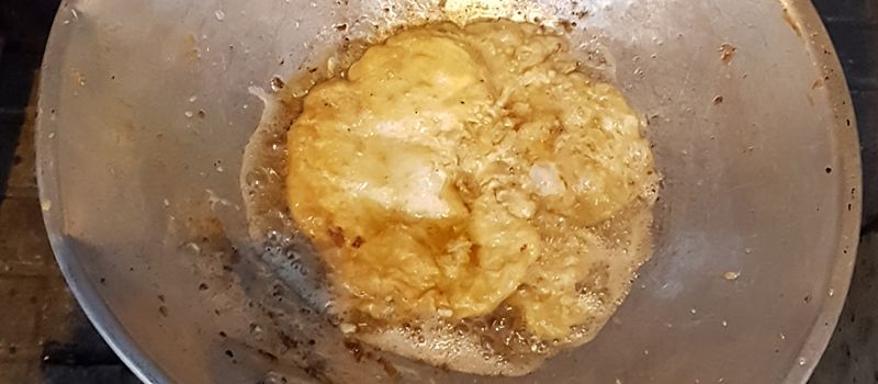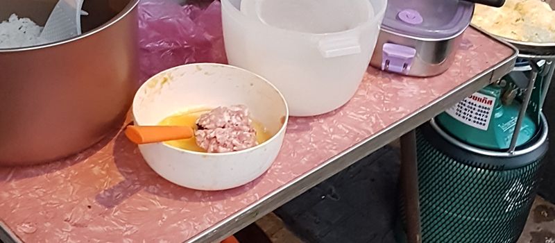 ตอนแรกพี่ น. ทอดไข่ แล้วให้เราทำเอง แต่เราอยากถ่ายภาพไข่เจียว เลยทำตะหลิวหลุดมือลงพื้น พี่ น. เลยเอาไปเช็คๆ ให้ เราก็บอกโดนความร้อนก็ฆ่าเชื้อเอง พี่ น. ก็มาทำต่อ 20 บาท