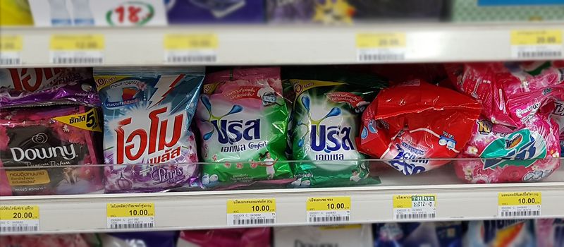 เราก็จะออกไปซื้อผงซักฟอก ป้า ป. ก็ให้กะละมังมา เราก็ถามป้าว่ามีแปรงซักผ้าให้ยืมมั้ย ป้าบอกเขาใช้มือขยี้ เราเลยงั้นใช้มือขยี้ แล้วออกไปซื้อผงซักฟอกพอ ตอนแรกก็คิดแพงมั้ย ไม่ได้ซื้อผงซักฟอกมานานแล้วจำราคาไม่ได้ แต่ราคาก็ประมาณ 10 - 12 บาท ก็ดูปริมาณกี่กรัมด้วย ซื้อแบบน่าถูกสุด 120 กรัม 10 บาท ก่อนไป 7/11 ป้า ป. ก็ซื้อมาม่ามา 2 ซอง บอกเรามาซื้อ 2 ซอง 10 บาท เราก็เลยบอกจะไปซื้อบ้าง