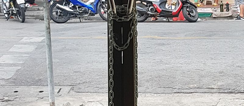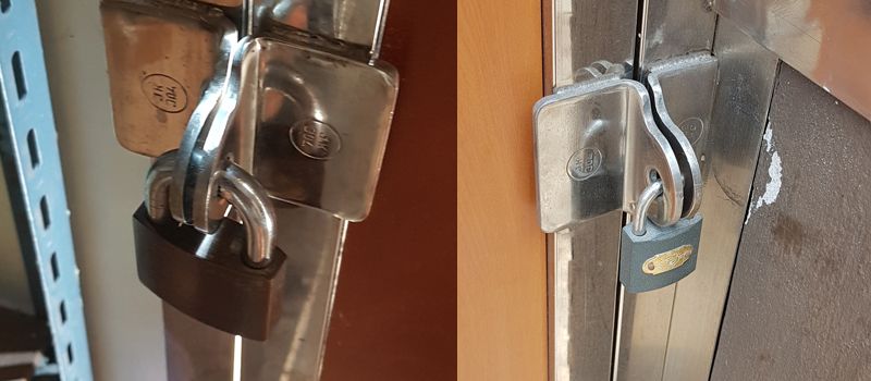 ส่วนประตูหน้า ล็อคแล้วเอาโซ่คล้องไว้อีกรอบ