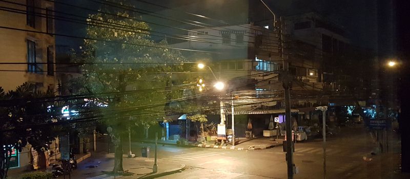 ประมาณทุ่มเศษๆ ป้าแกบอกไม่ไหวแล้วจะหลับ เราขึ้นล็อคประตูด้วย เราก็บอกขึ้นด้วย คือเราจะอยู่ทำไมคนเดียว TV บนห้องเราก็มี ป้าแกเลยล็อคประตู เราก็แว่บไปส่องๆ หน้าต่างข้าง ก็ยังพอมีคนขาย คนเดินไปมาบ้าง แต่ก็เงียบๆ ....ตอนขึ้นมา ป้าแกก็ถาม ไม่เอาแกงไก่ขึ้นมาด้วย เราก็บอกไม่กินแล้ว ไม่ชอบกินผัก ไม่มีถุงพลาสติกด้วย ก็คือวางไว้ตรงนั้นก่อน ค่อยจัดการพรุ่งนี้ ป้าแกก็เออออ คือเดี๋ยวหาถุงพลาสติกมาใส่ทิ้งพรุ่งนี้