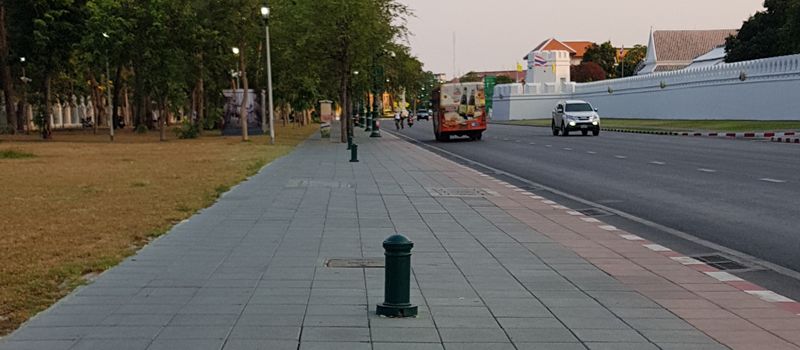 เดินไปถึงทางแยกก็เลี้ยวซ้ายที่จะนำเราเดินย้อนไปแถวถนนเลียบวัดพระแก้ว ก็วิ่งเหยาะๆ ไป เจอคนมาปั่นจักรยาน 3 คน ก็คือยังมีคนมาเดิน มาวิ่งและออกกำลังกายอยู่ แม้ไม่เยอะ คือปกติแถวนี้คนเยอะเพราะเป็นแหล่งท่องเที่ยว
