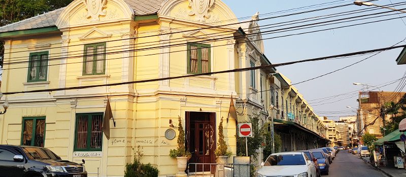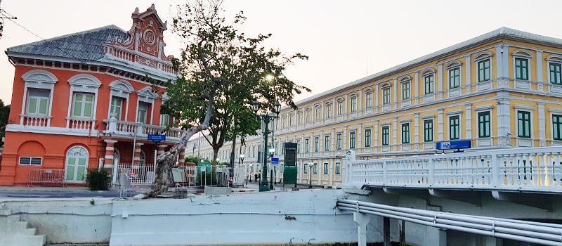 เราก็เดินไปเรื่อยๆ มีเริ่มวิ่งตอนเลียบสวนสราญรมย์ คือเลยสวนสราญรมย์ไปด้านหลัง เราไม่เคยมา ก็เลยกะสำรวจไปเรื่อยๆ ระหว่างทางที่เดิน - วิ่ง...เจอสะพานนี้ก็เลยเข้าไปอ่านข้อมูลแล้วเดินข้ามไป...อีกเหตุผลคือเราสนใจตึกสีเหลืองแบบโบราณตรงข้าม ดูสวยดีอยากเดินไปดูใกล้ๆ