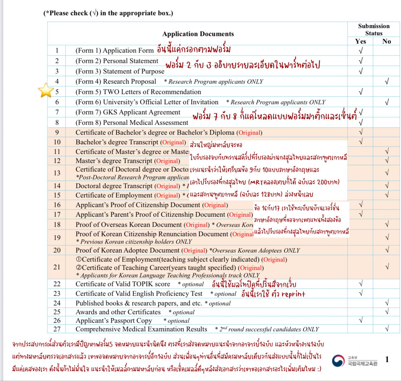 1. ทุนรัฐบาลเกาหลีคือ.....