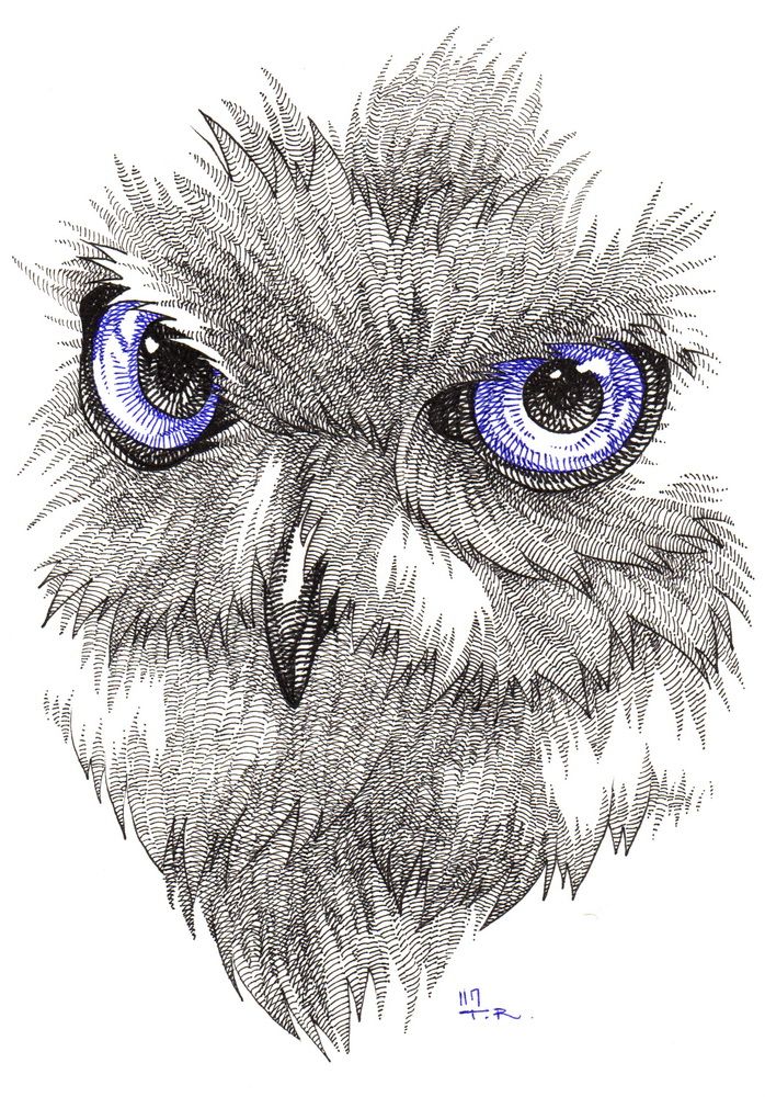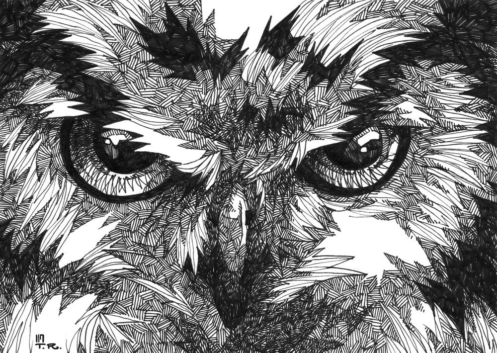 นี่คือรูปเริ่มต้นการเสพติดวาดนกฮูก พอวาดแล้วก็หยุดตัวเองให้วาดต่ออีกรูปไม่ได้ แต่ตอนนี้หยุดได้แล้ว เพราะทำงานและเวลาว่สงวาดอะไรละเอียดถี่ยิบขนาดนี้ก็น้อยลงอย่างมาก