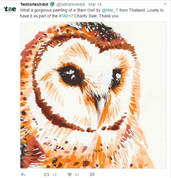 ล่าสุดภูมิใจกับนกแสกตัวน้อยๆที่ส่งไปเข้าร่วมงาน TAE - Twitter Art Exhibit 2017