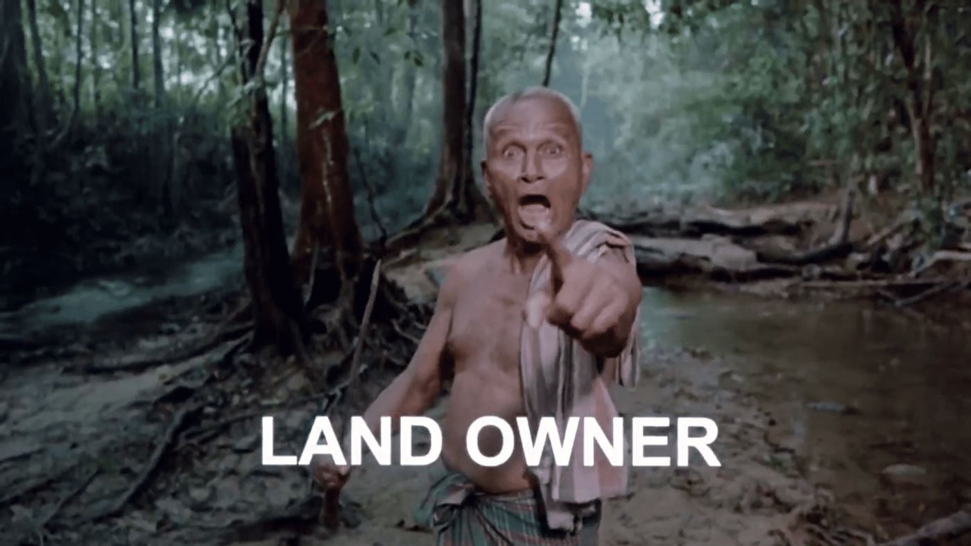 วันหนึ่งขณะที่อาจินต์ออกไปสำรวจแผนที่อาจินต์ได้พบว่าหลักเขตบ้านของตาเคื่อม อาจินต์ได้จับสังเกตุความผิดปกติของหลักเขตบ้านตาเคื่อมที่ย้ายมาทับลำห้วยถึง 20 กว่าฟุต ขณะที่กำลังสั่งให้ไอ้ไข่ถอนหลักเขตก็มีเสียงตาเคื่อมดังมาแต่ไกล "เห่ย หนี่มึงอย่ามาหยุงกับหลักเขตกูนา เดี่ยวกูฟันหลังข๊าด" พร้อมกับชูดาบเหล็กในมือวิ่งไล่ พวกอาจินต์จึงต้องถอยพลางไอ้ไข่ก็ตะโกนเยาะเย้ยตาเคื่อมไปพลาง