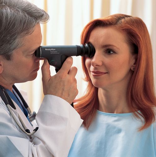 ตอนตรวจก็ถามปกติ มีตรวจ Ophthalmoscope