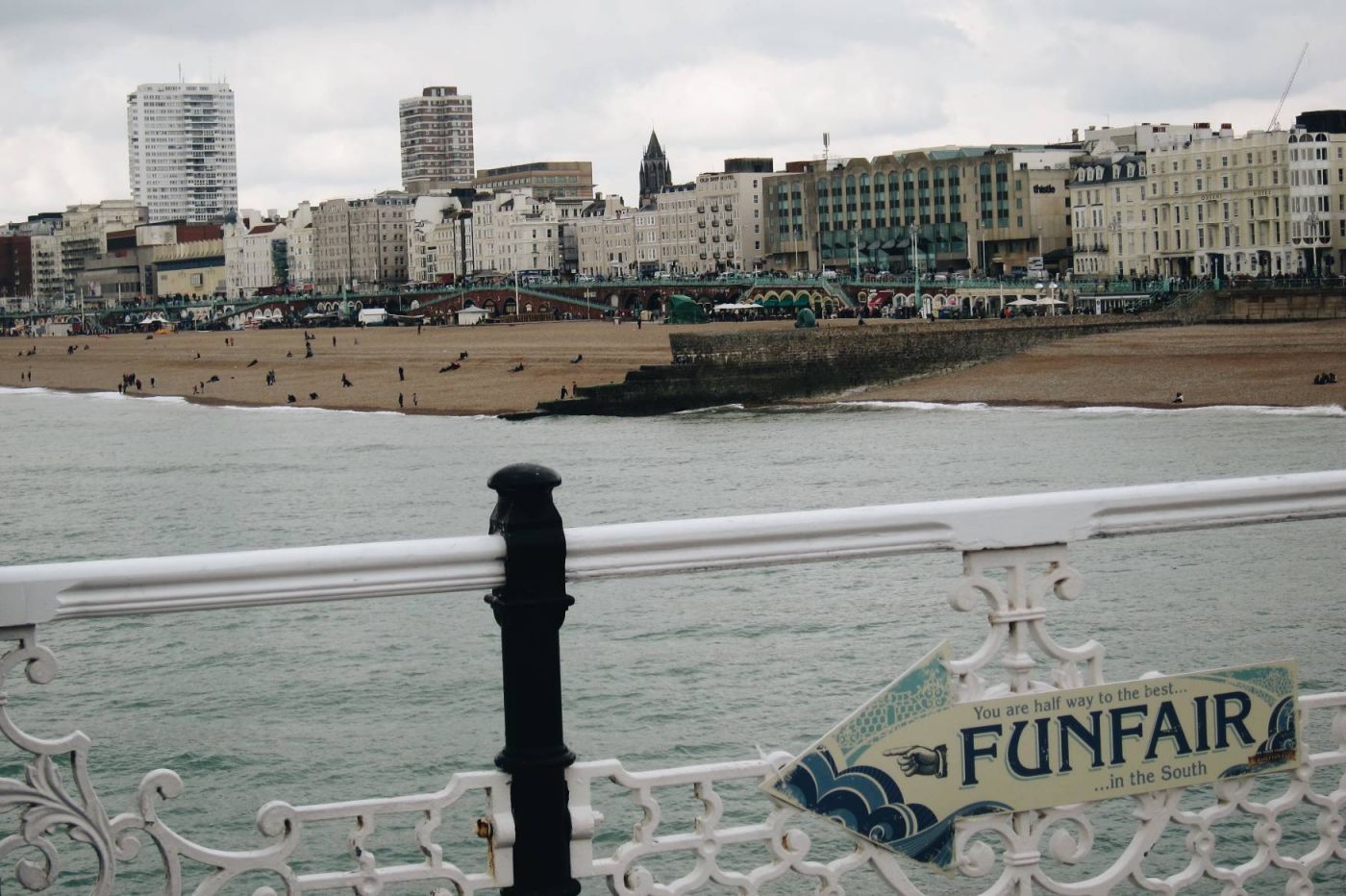 หลังจากแยกย้ายกันทานอาหารเสร็จเรียบร้อยแล้ว เราก็ไปที่ Brighton Pier กัน แม้ท้องฟ้าจะไม่ใสเท่าเมื่อเช้า แต่วิวก็ยังสวย ชวนเหงาอีกด้วย (แต่มากันหลายคนเลยไม่เหงา)