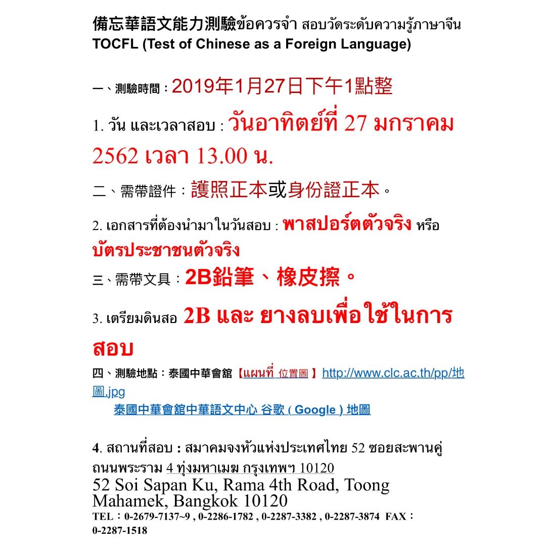 เริ่มสอบตอนบ่ายโมง ก่อนถึงวันสอบก็จะมีอีเมลล์จากสมาคมจงหัวส่งมาคอนเฟิร์มวันเวลาสถานที่สอบอีกที รวมถึงบอกสิ่งที่ต้องใช้ในการเข้าสอบด้วย