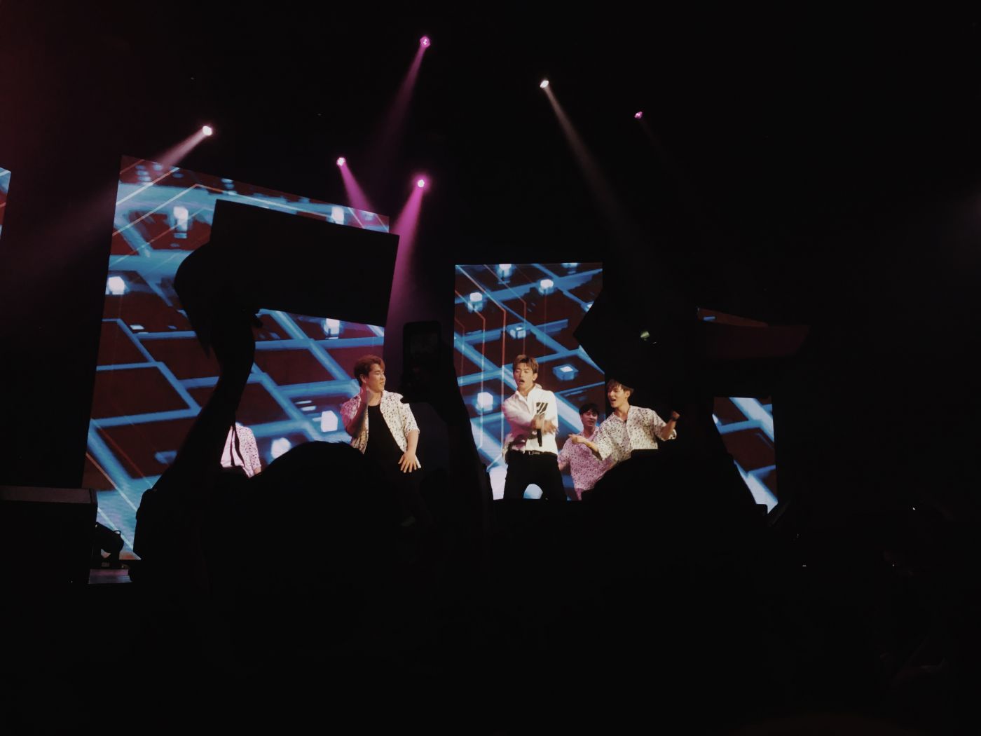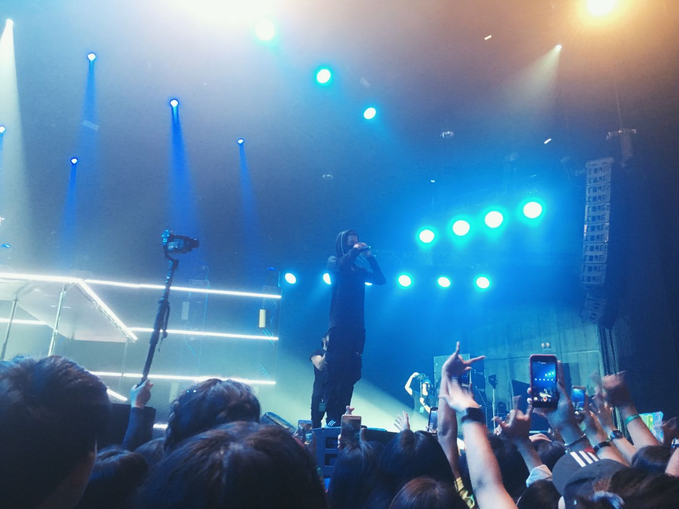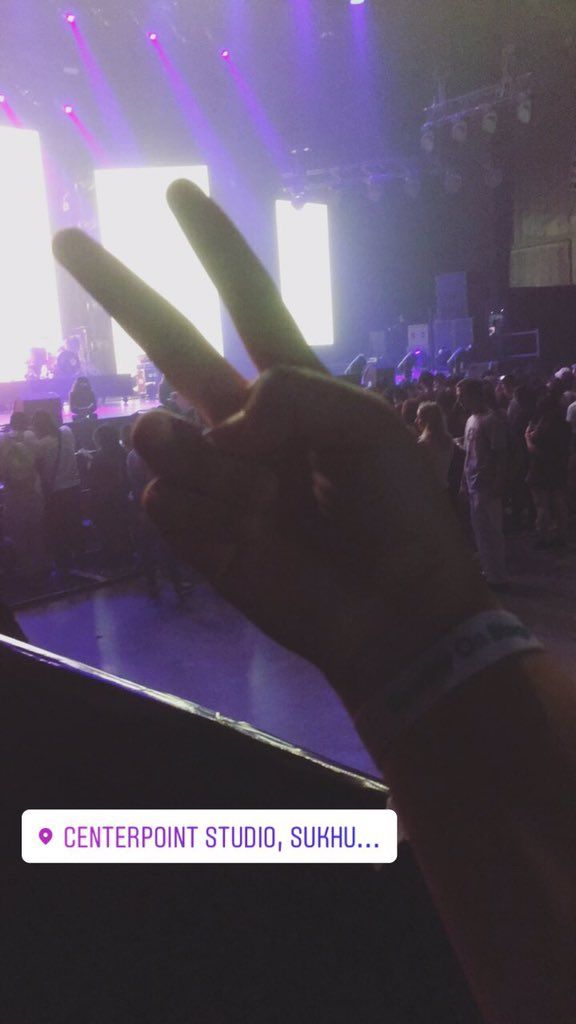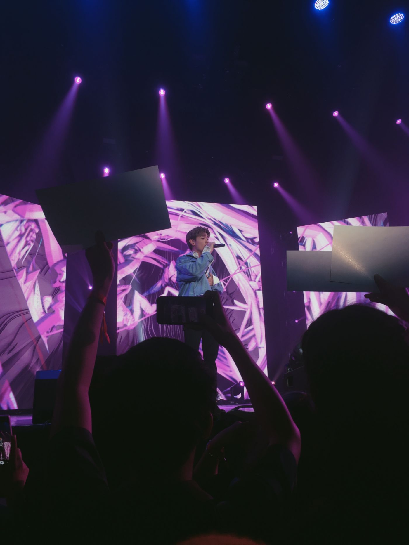 รอนานจริง สุดท้ายเขาก็มาค่ะ ใส่ฮู้ดดำ กางเกงดำ ปิดแมสด้วย ละเวทีก็สูงอย่างที่เห็น สรุปก็คือเห็นแค่เงาดำๆของเขา 5555555555555 ถ่ายภาพเขามายากมากกกกก มองไม่เห็นน ฉากข้างหลังก็ลายตาสุดจนมองไม่เห็น