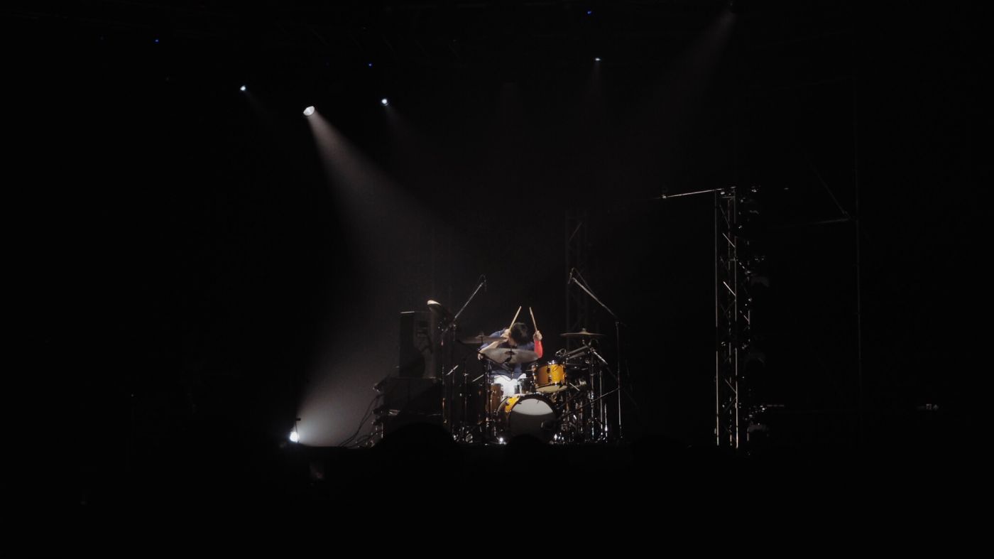 ตำแหน่ง เขาเรียงกันหน้ากระดานเลยค่ะ ไม่ใช่ให้มือกลองอยู่ด้านหลัง ทำให้เห็นทุกคนในมุมที่ดี แสงไฟสปอตไลต์ก็ส่องลงมาทุกคน เราก็เลยได้ภาพมาค่อนข้างพอใจเลยค่ะ ดีมากมาก T___T
