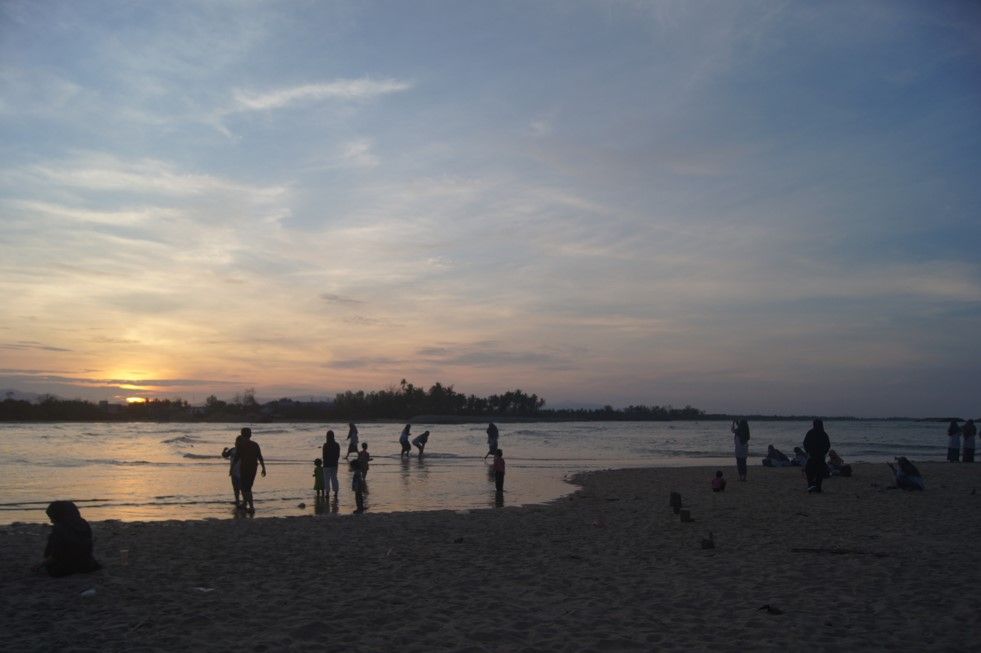 บรรยากาศตอนพระอาทิตย์ตกที่หาดนราทัศน์ อ.เมือง จ.นราธิวาส