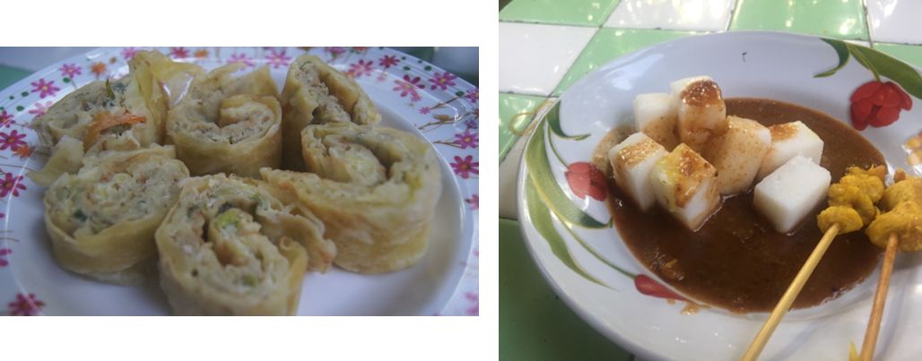 ไปถึงก็ไปดูขนมก่อนเลย อันนี้ชิ้นละ 5 บาท แต่จำชื่อไม่ได้เพราะชื่อแอบเรียกยากอยู่ ขนมอันนี้ทำจากแป้งข้าวสารข้างในเป็นไส้มะพร้าวผสมกับสมุนไพรในครัวเรือนทุกสิ่งอย่าง มีกลิ่นเครื่องเทศแบบอินเดียเล็กๆแต่ไม่แรงมาก สำหรับคนที่ไม่ชอบเครื่องเทศอย่างเราก็กินได้ คนปัตตานีเขาจะเน้นหวานทุกสิ่งอย่างจะออกรสหวานๆหน่อย คือเราก็เข้าใจมาตลอดว่าคนใต้กินเผ็ดแต่พอได้มาที่นี่เลยรู้ว่า คนใต้กินเผ็ดแหละแต่ยกเว้นคนที่นี่