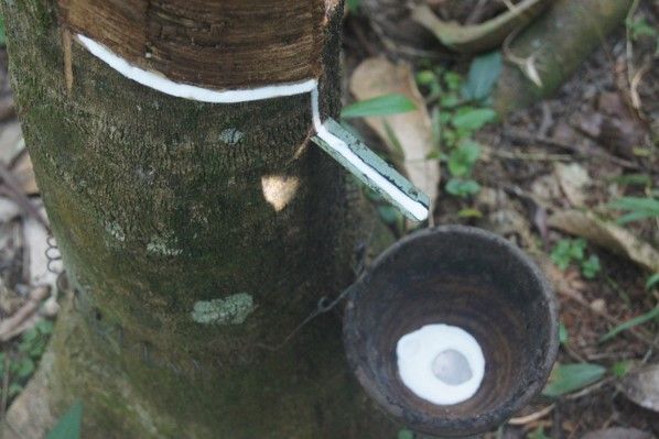 อันนี้คือต้นยางที่มืออาชีพกรีด ส่วนของที่เราลองกรีดนั้นคือเละเทะมาก (แต่ก็ได้น้ำยางอยู่นะ)