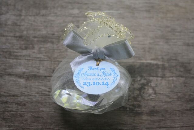 -อันนี้เป็นของชำร่วยงานแต่งงานของพี่ที่รู้จัก เขาทำงานเกี่ยวกับเพชรทั้งสองคนเลย ดูมีความหมายแล้วก็ครีเอทได้ดี