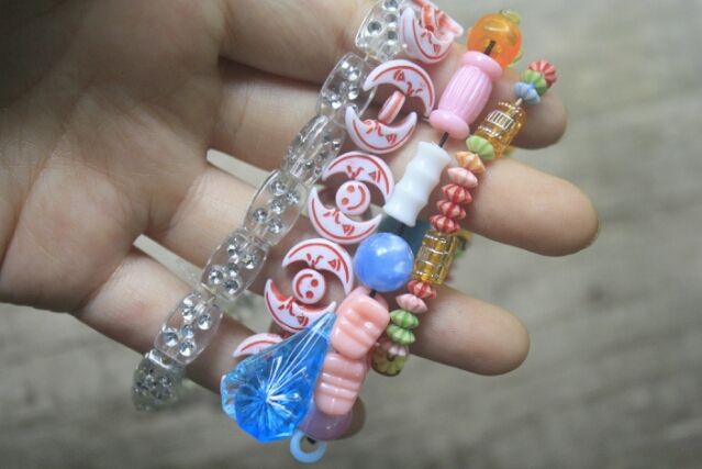 -อันนี้เป็นสร้อยข้อมือแถมขนม แต่อันที่พิเศษคือเส้นที่3นับจากทางซ้ายมา เป็นของเพื่อนสมัยประถมที่เขียนจดหมายมาให้เป็นชาวแคนาดา