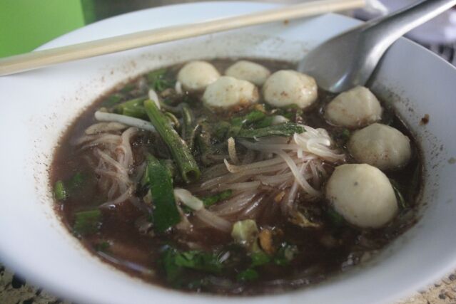 พอเที่ยงก็แวะร้านข้างทาง มื้อนี้กินก๋วยเตี๋ยวน้ำตกลูกชิ้น รสชาติก็พอกินได้