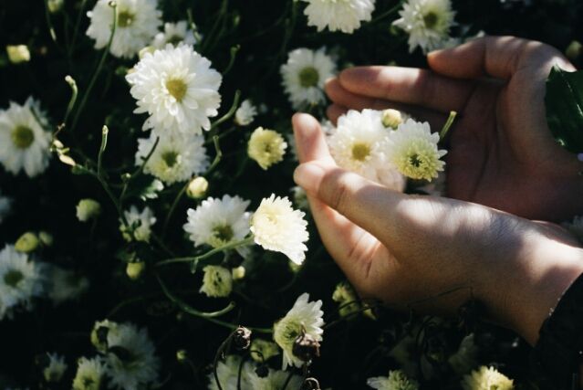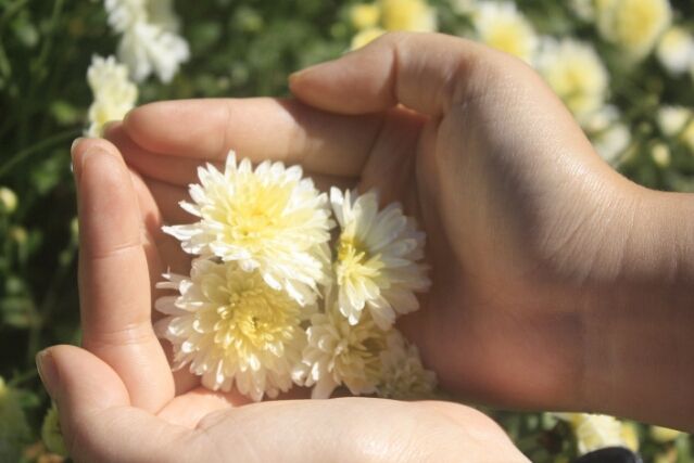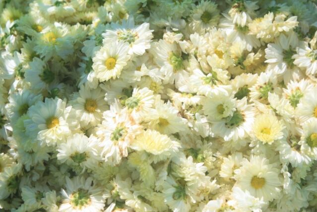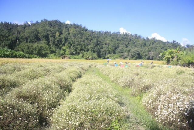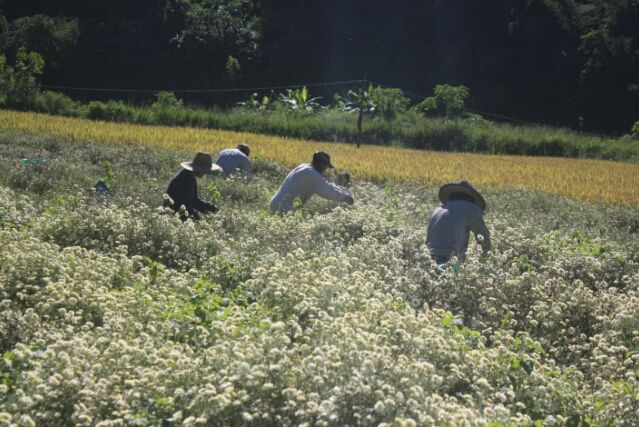กำลังเก็บดอกเก็กฮวยกันอยู่