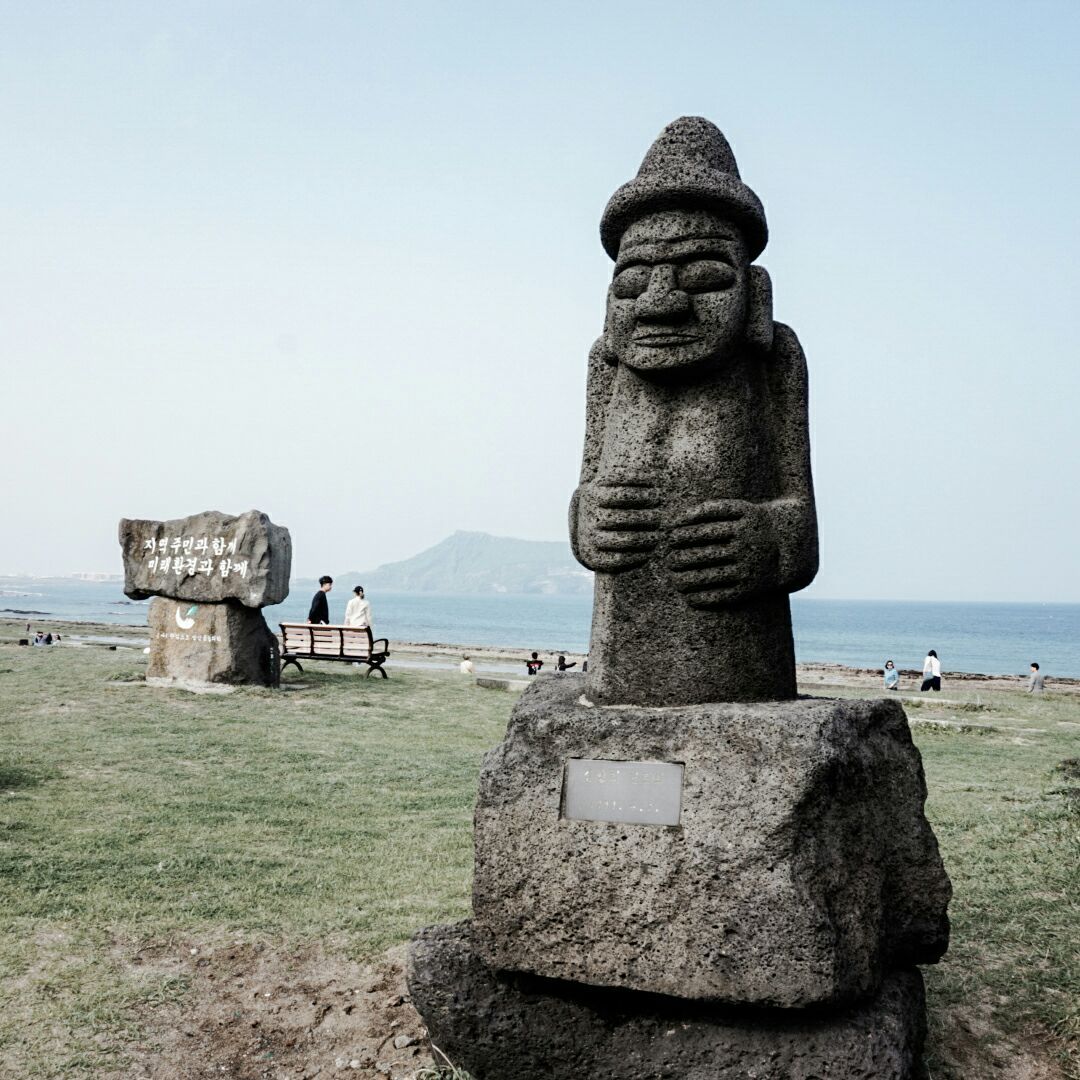 ที่เกาะเชจูจะเจอหินคุณปู่ได้ตามสถานที่และข้างทางทั่วไปเลยค่ะ ซึ่งมีคนเล่ามาว่าถ้าจุ้บหัวของหินคุณปู่ก็จะได้เจอเนื้อคู่ แต่บางคนก็เล่าว่าถ้ากอดหินคุณปู่ก็จะเจอเนื้อคู่..สับสนนิดหน่อยเพราะงั้นก็ทั้งจุ้บหัวและกอดไปเลยค่ะเพื่อความชัวร์...
