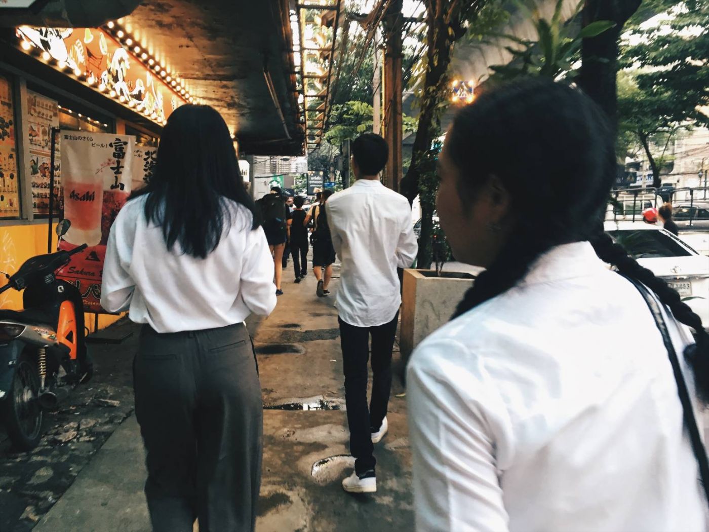 ช่วงที่ติดเจ็ทสปีดที่เท้าเพื่อไปเอ็มควาเทียร์ค่ะ เพื่อนในแก๊งใส่เชิ้ตขาวมาพร้อมกันโดยไม่ได้นัดหมาย มีเราคนเดียวเสื้อลายขวางขาวดำ นักโทษมากๆ