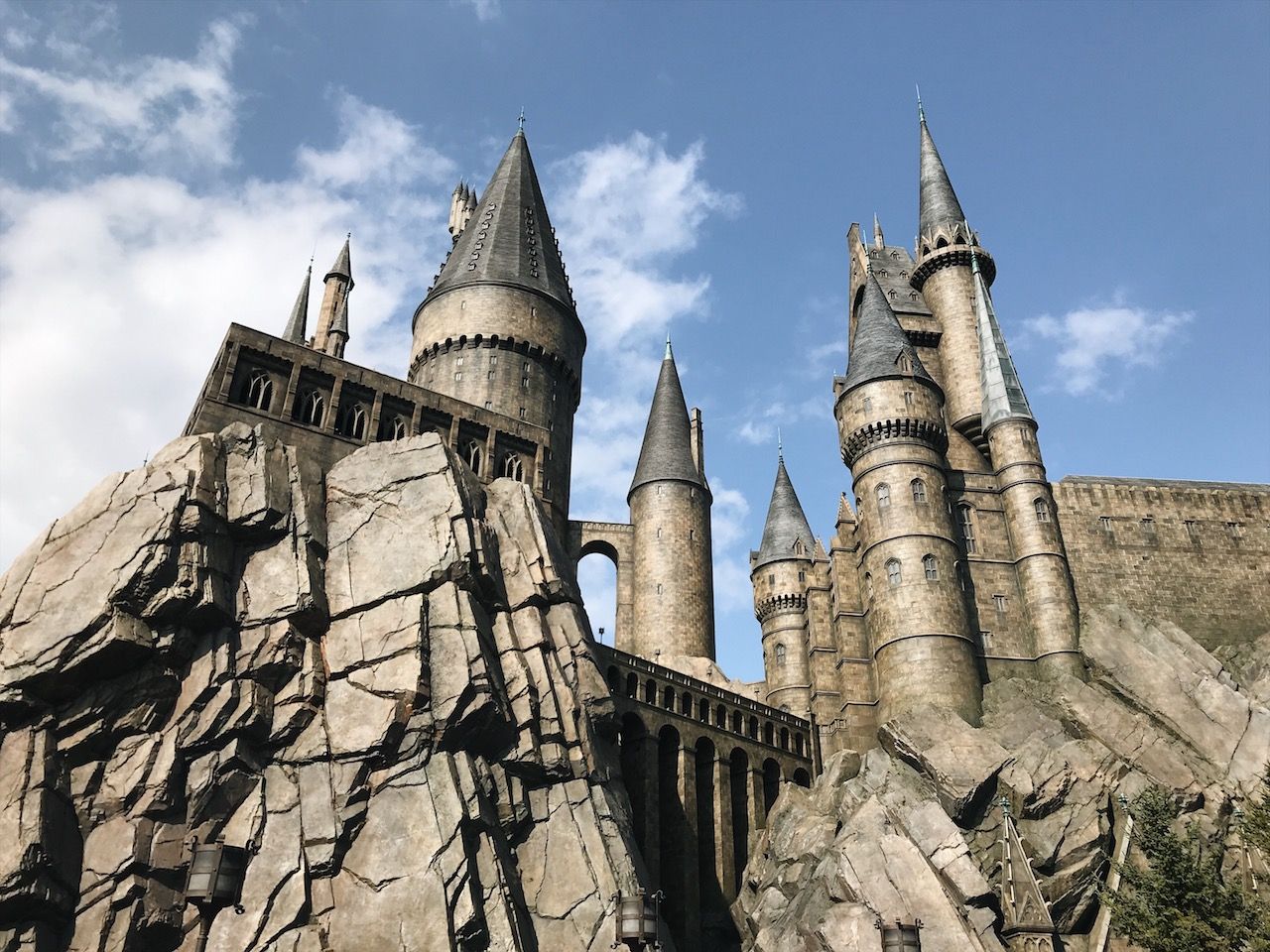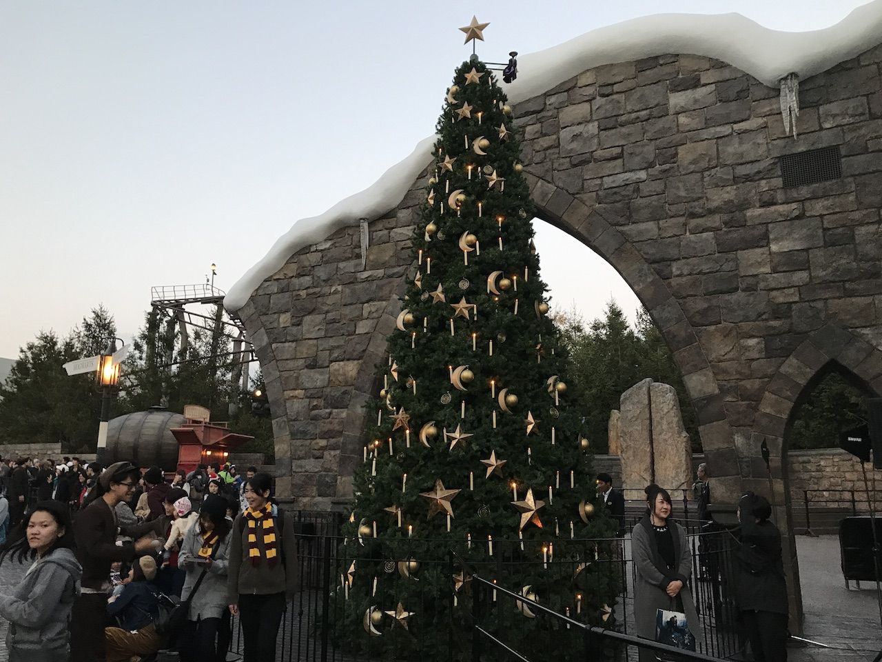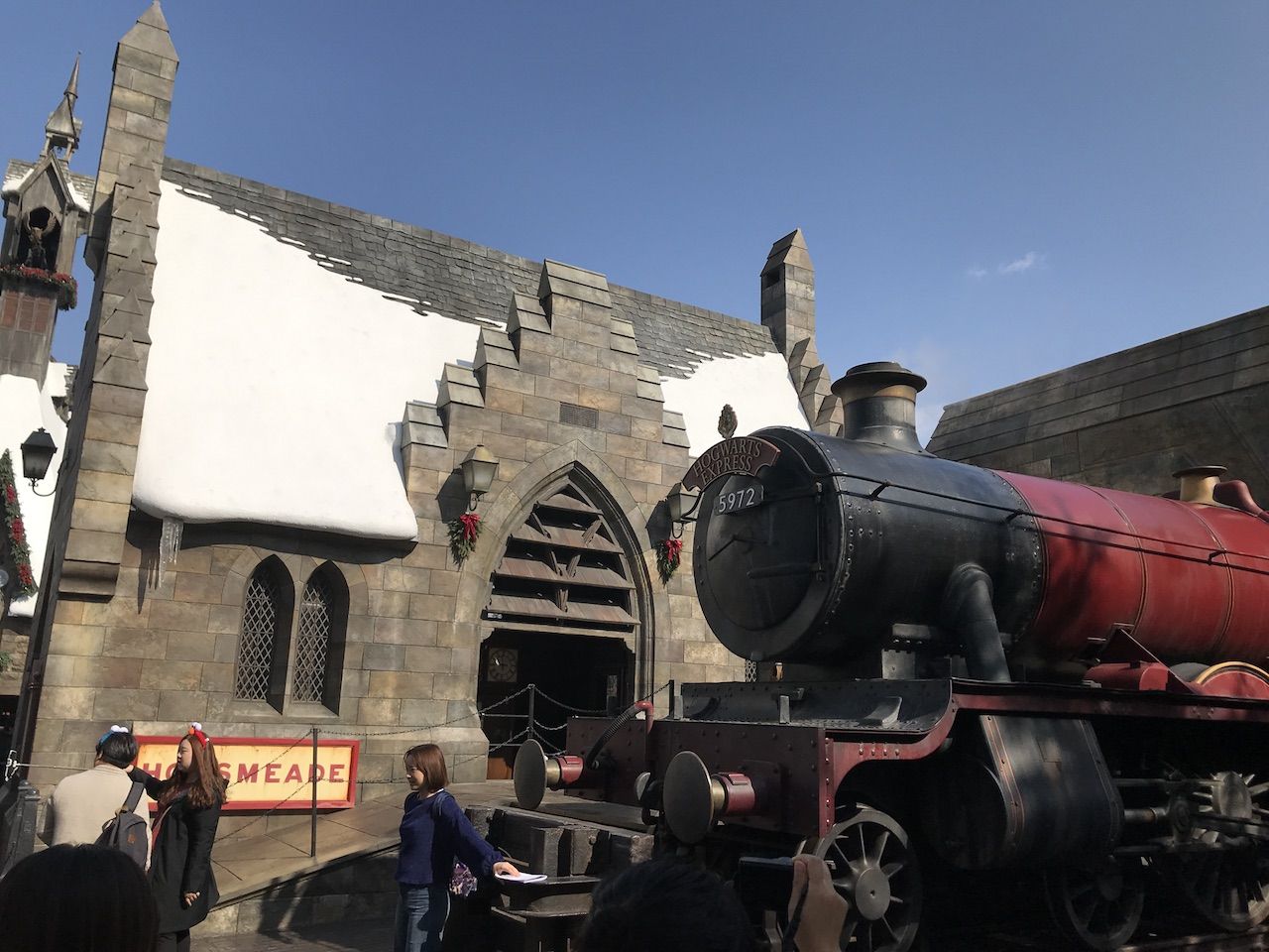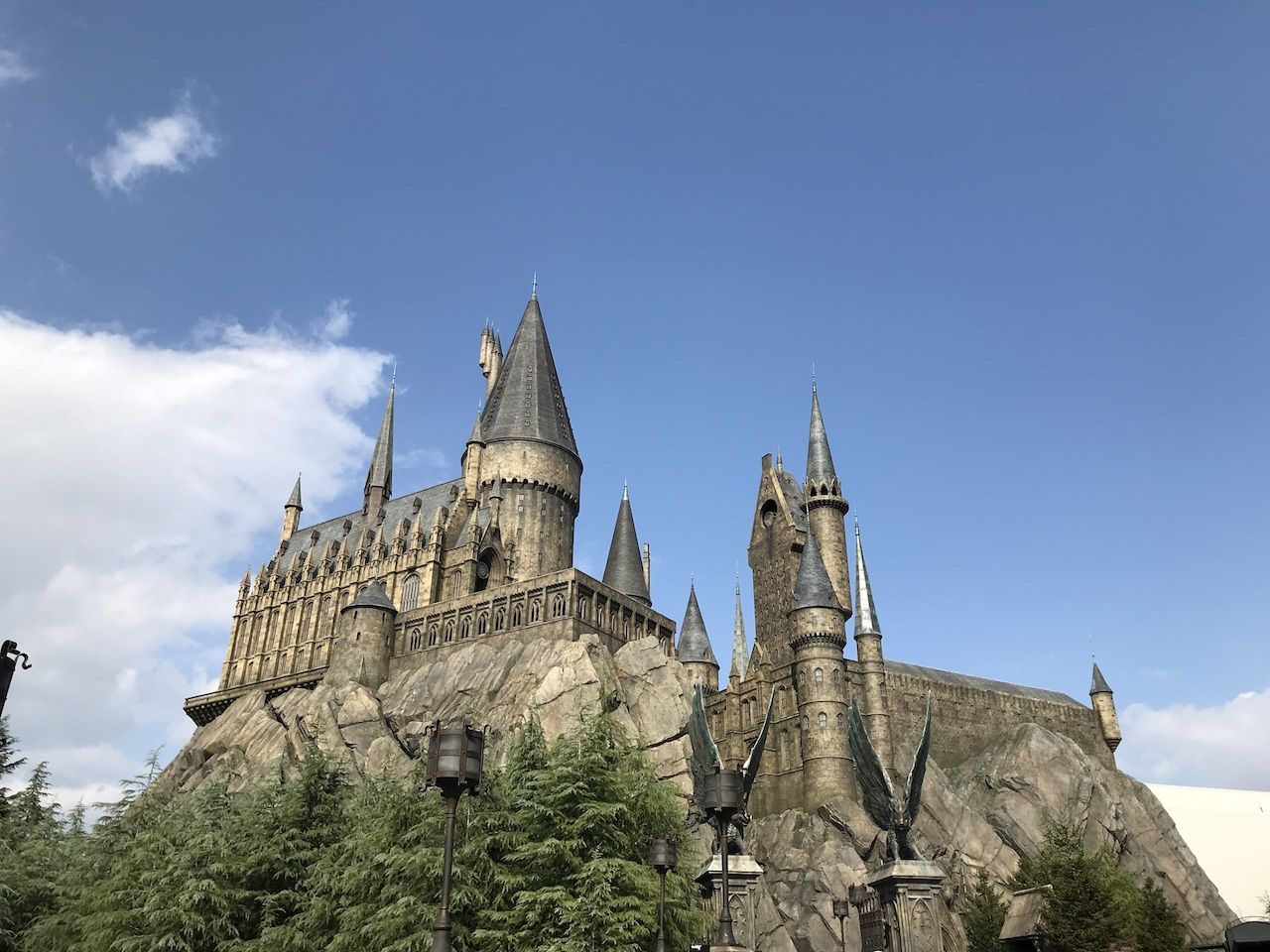 พวกเรามาถึง USJ กันตั้งแต่เช้าตรู่ สังเกตที่ด้านขวาของภาพยังมีดวงจันทร์ปรากฎอยู่บนฟากฟ้าอยู่เลย ถือคติที่ว่านกที่ตื่นเช้าจะได้กินหนอนตัวอ้วนกลมฉันใด คนที่ตื่นเช้าก่อนชาวบ้านชาวช่องเขาก็จะได้เข้าพาร์คก่อนฉันนั้น