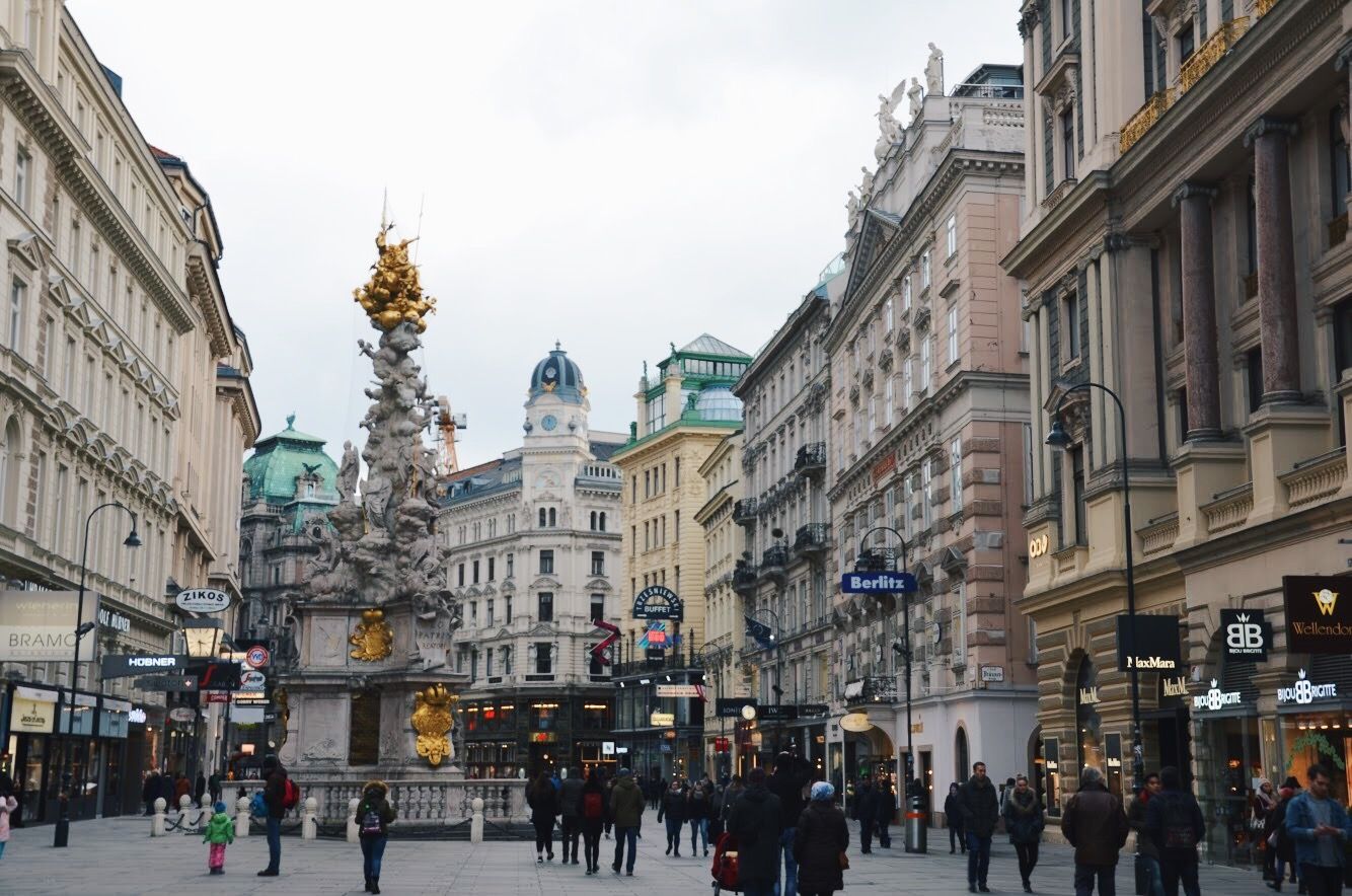 มีโบสถ์ St. Stephen's Cathedral ซึ่งเป็นสิ่งก่อสร้างที่สูงที่สุดในเวียนนา โดยรวมเป็นย่านที่มีร้านค้า ร้านอาหาร และคาเฟ่เยอะมาก เวียนนาเป็นเหมือนเมืองคาเฟ่ด้วยนะคะ ร้านกาแฟหรือช็อคโกแลตดังเดินผ่านกี่ครั้งก็เห็นคนต่อแถวยาวตลอดเลย