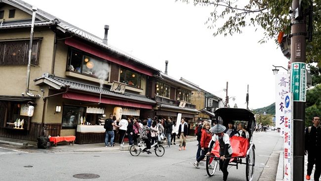 ทางเข้าไปในป่าไผ่ มีร้านอาหาร คาเฟ่ น่ารัก ๆ
