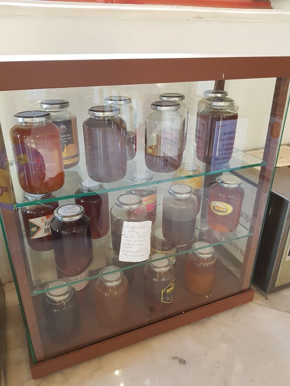 ส่วนจัดแสดงนี้แอบหายากนิดนึง ถึงกับต้องถามเด็ก BAB ว่าอยู่ตรงไหน ปรากฏว่าอยู่ในโบสถ์(?) นี่แหละ เป็นน้ำผึ้งจากที่ต่างๆ ป้ายที่อธิบายบอกว่า มันสามารถเก็บได้ถึง 2,000 ปี เปรียบเสมือนทองคำในรูปของเหลวที่ล้ำค่า ลองคิดภาพในอนาคตสิ ถ้าอีก 2,000 ปีข้างหน้าผึ้งสายพันธฺุ์ใดสายพันธุ์หนึ่งที่ทำน้ำผึ้งให้โหลพวกนี้สูญพันธุ์ไป ขวดน้ำผึ้งที่เก็บไว้ตรงนี้ จะมีมูลค่ามากมายแค่ไหนกัน ?