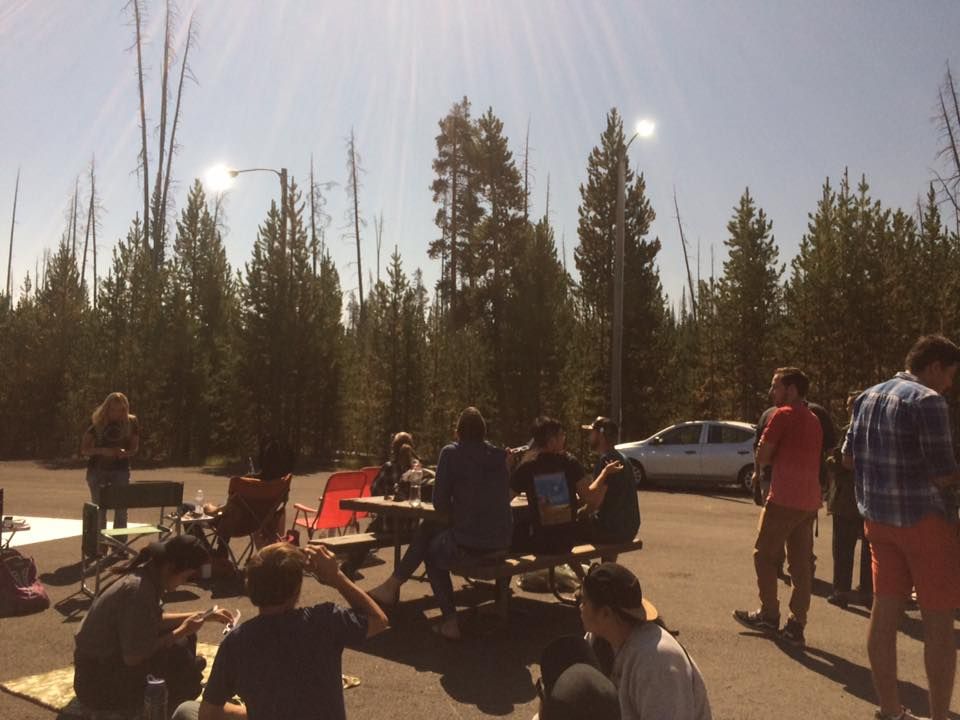 08.21.17 Eclipse in USA ไม่ได้เกิดง่ายๆ ตอนแรกก็งงว่า ทำไมคนที่นี่ตื่นเต้นกันใหญ่ มีโฆษณา พูดถึงปรากฏการณ์นี่เยอะมากๆ เพราะรู้สึกว่าเคยเห็นตอนเด็กๆแล้ว คิดว่าจะเกิดบ่อย แต่พึ่งรู้ว่าเป็นการเกิด Eclipse หรือสุริยปราคาเต็มดวงครั้งใหญ่ในรอบ 99 ปี ในอเมริกา และมีโอกาสได้มาเห็นที่ Yellowstone ตอนเกิด ทุกอย่างมืดไปเลยจริงๆ ดวงจันทร์บังดวงอาทิตย์ เสาไฟปิดอัตโนมัติเลย มันคงคิดว่ากลางคืน